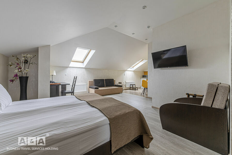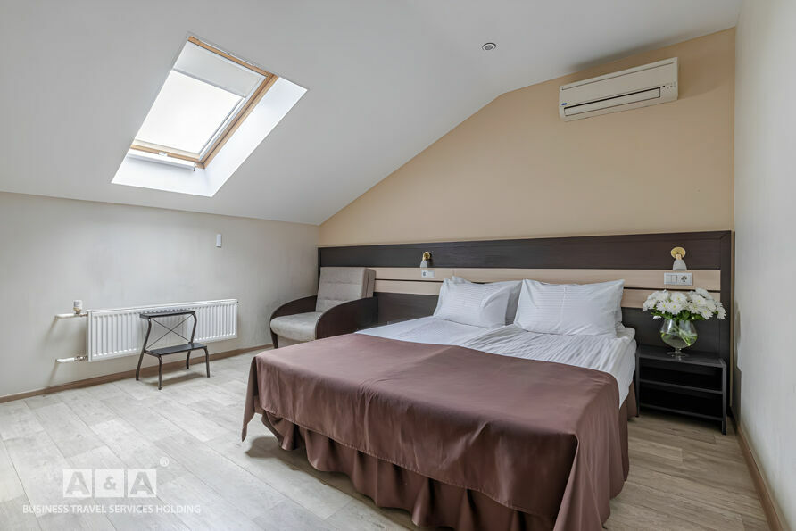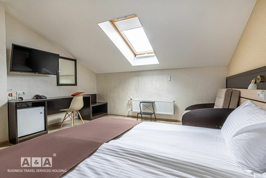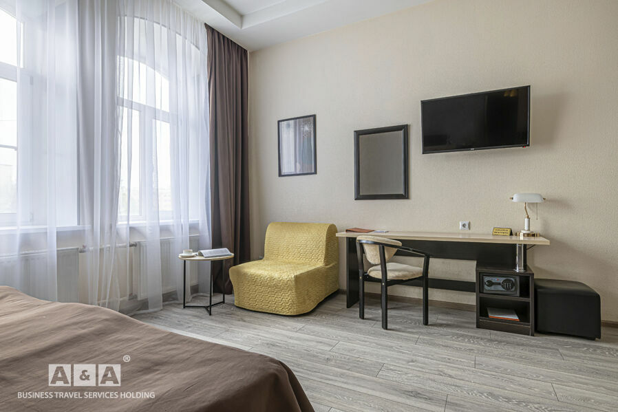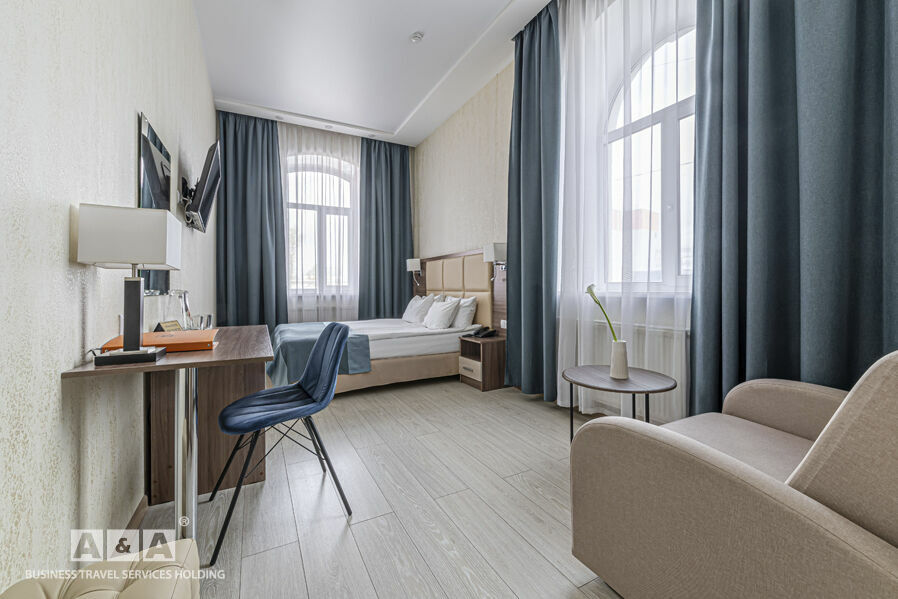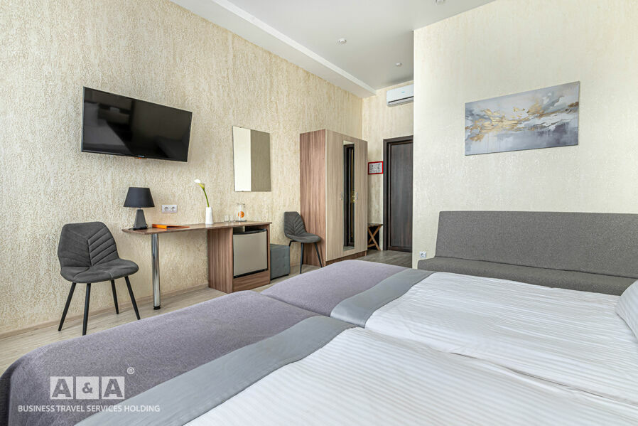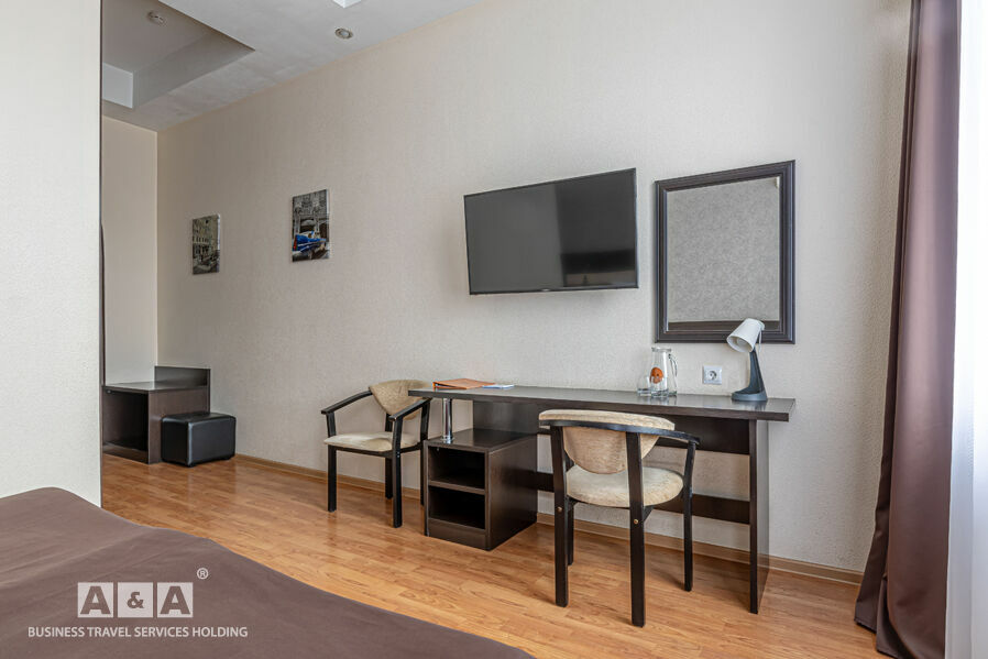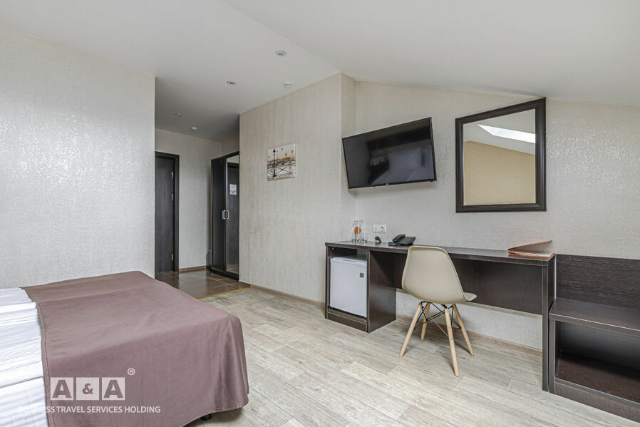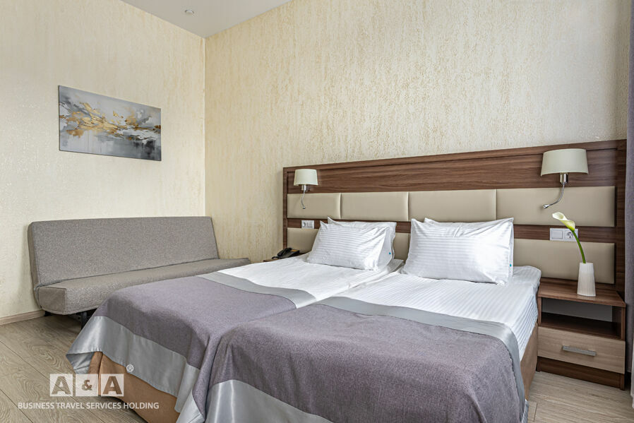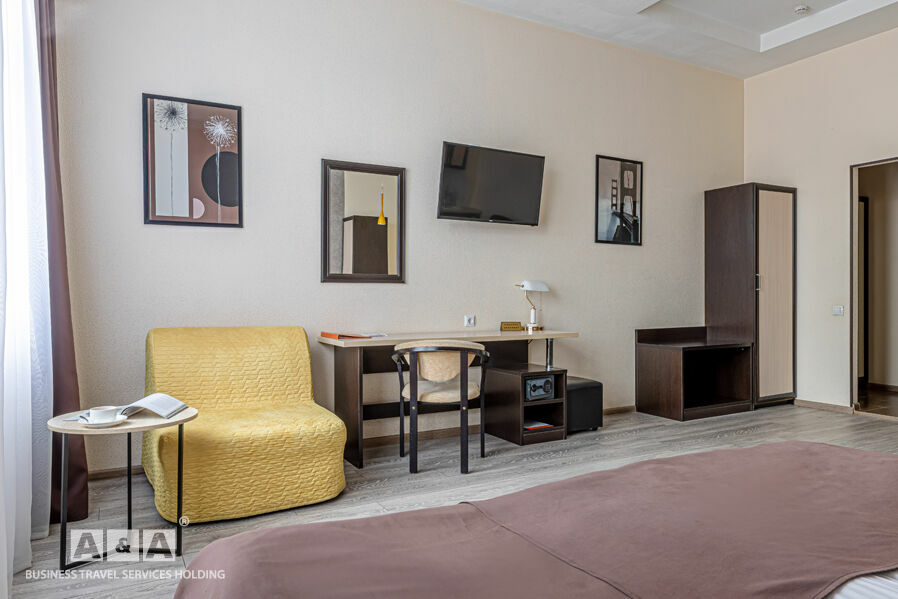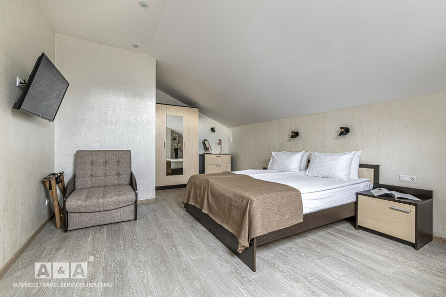 Номера гостиницы делятся на такие категории - «Стандарт», «Комфорт» и «Люкс». Оснащение номеров: холодильник, кондиционер, сейф, душевая кабина. Всего номеров — 43.