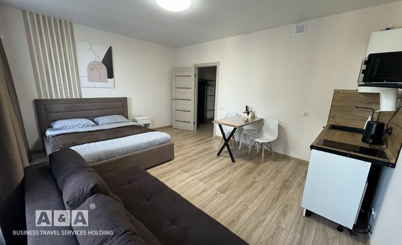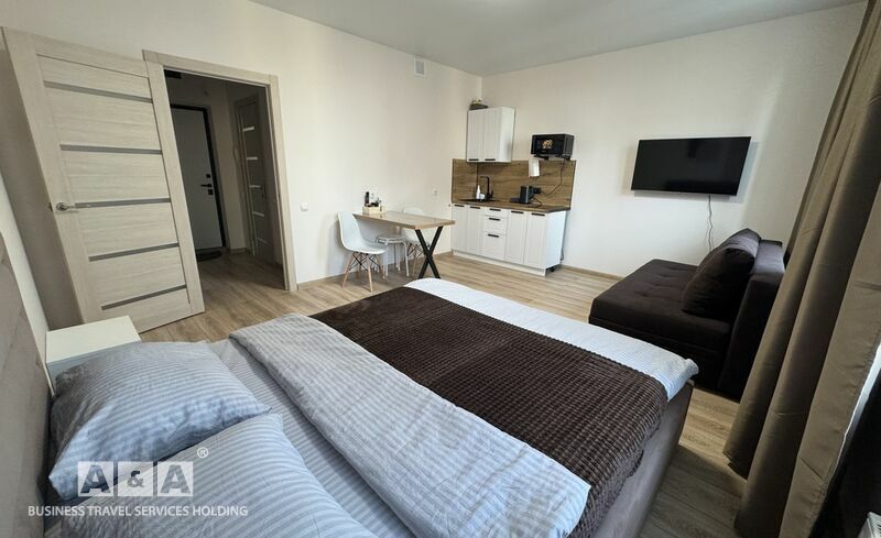 Апартаменты 1-комнатные этаж 8 коричневая кровать