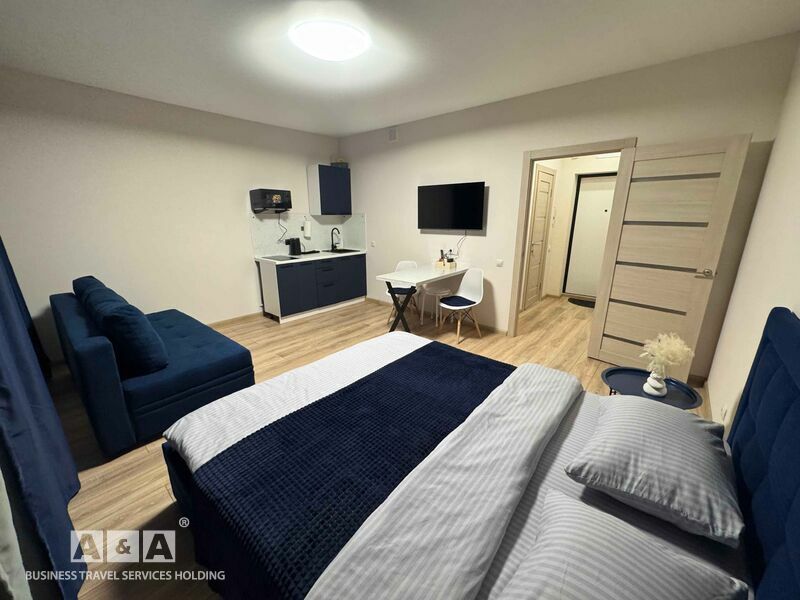 Апартаменты 1-комнатные этаж 7 синяя кровать